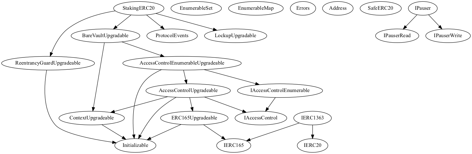StakingERC20, BareVaultUpgradeable, & LockupUpgradeable |