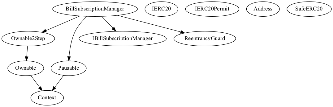 The contract allows users to create bills specifying a recipient, amount, and payment token type, provided that both the merchant and recipient hold valid subscriptions. Additional conditions include the recipient having a subscription tier equal to or lower than the merchant, the bill amount being below the tier's maximum single bill limit, and the merchant’s total daily bills not exceeding the tier’s daily permitted amount. Created bills can be settled by the recipient through the PaymentSettler contract, while bill creators can delete unsettled bills if desired.
