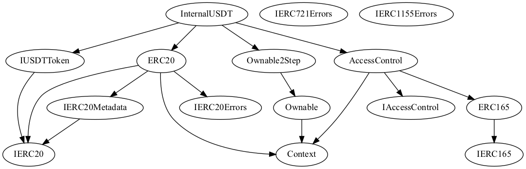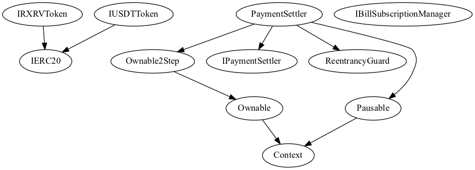 IUSDTThe IUSDT contract introduces Internal USDT, a token utilized for bill payouts within the platform. Similar to rXRV, the Settler Role, assigned to the PaymentSettler contract upon deployment, has the ability to mint or burn IUSDT tokens from any address. The Default Admin role, assigned to the owner upon deployment, oversees role management and can grant or revoke the Settler Role for any address. The owner also has the authority to update the PaymentSettler address, transferring the Settler Role to a new address and revoking it from the old one.
